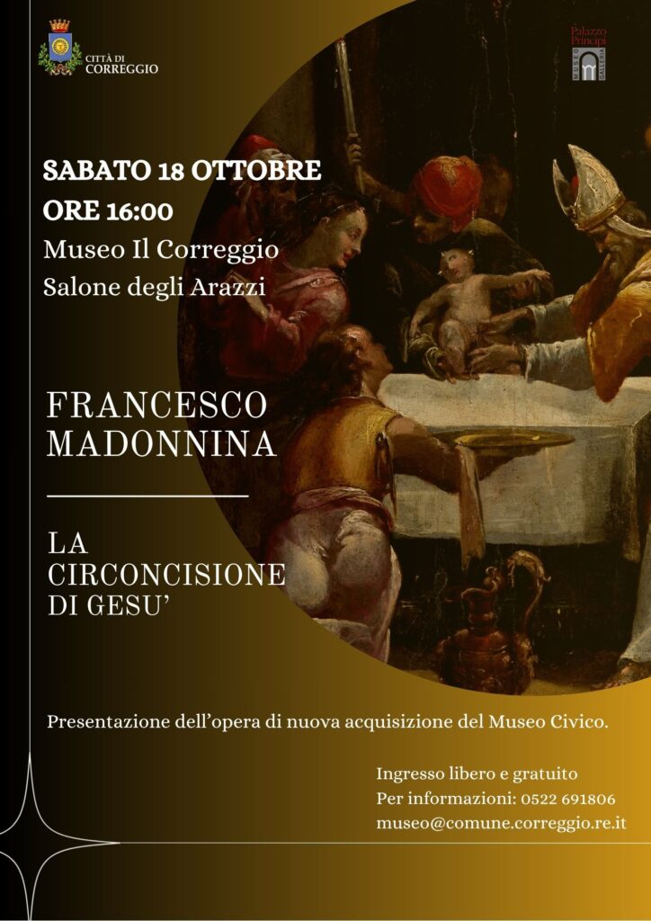 La Città di Correggio è lieta di annunciare l’acquisizione dell’opera La Circoncisione di Gesù, un importante dipinto del pittore cinquecentesco Francesco Madonnina, entrato ufficialmente a far parte della collezione del Museo Civico Il Correggio.