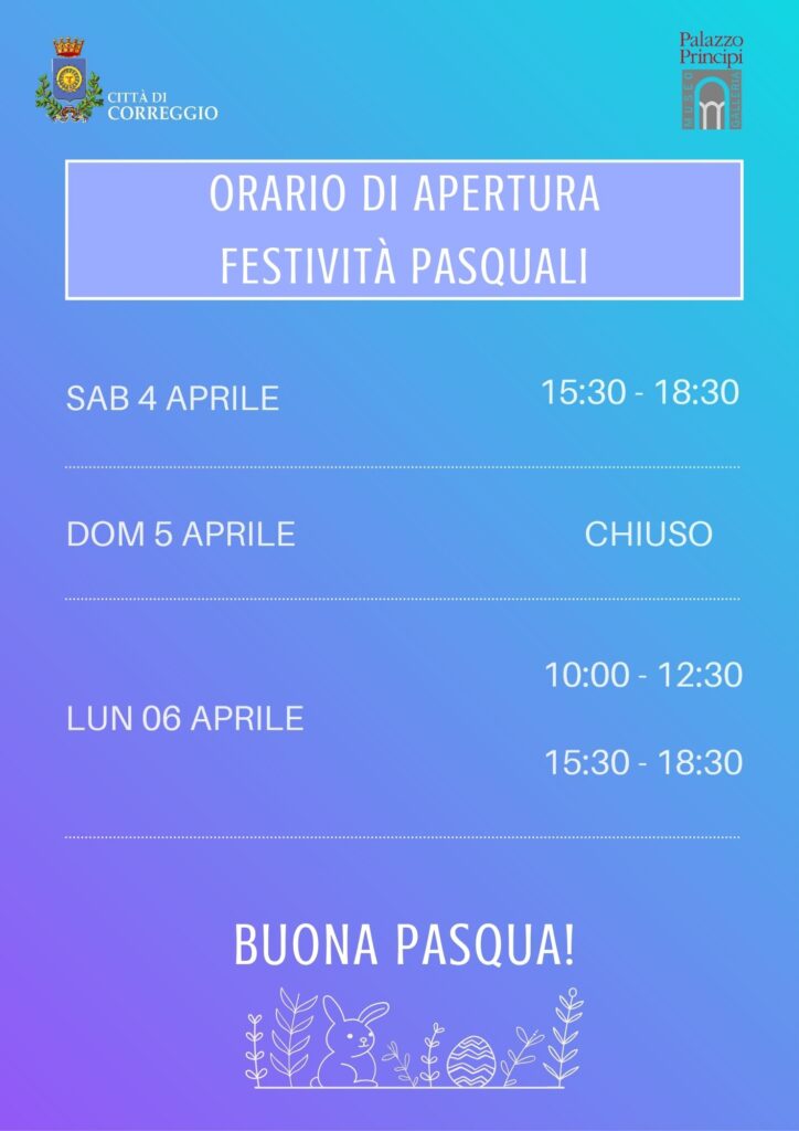 Il Museo Civico Il Correggio durante le festività pasquali osserverà il seguente orario di apertura: