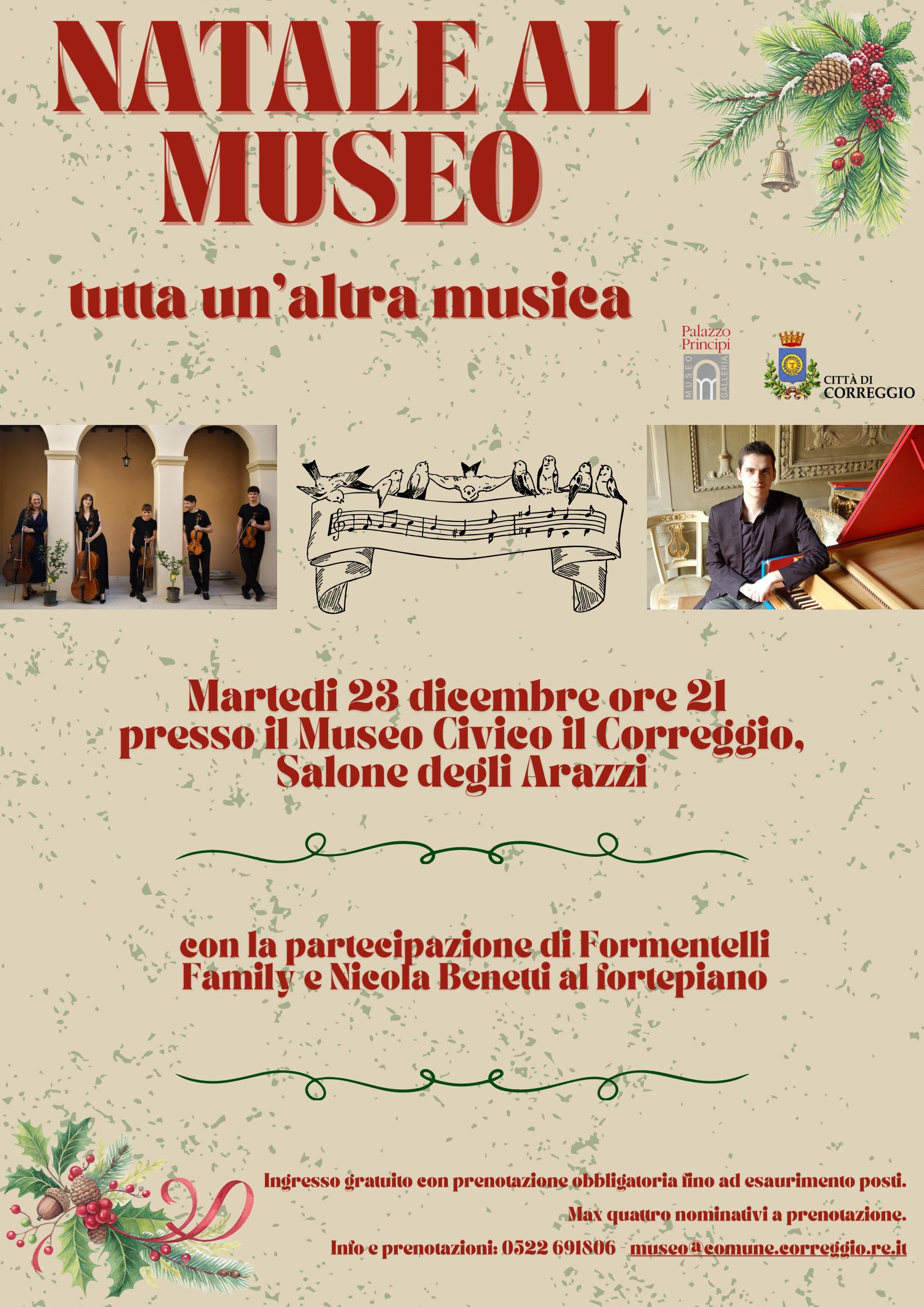 Il Museo Civico Il Correggio vi invita martedì 23 dicembre alle ore 21:00 per il concerto di Natale che si terrà nel Salone degli Arazzi.