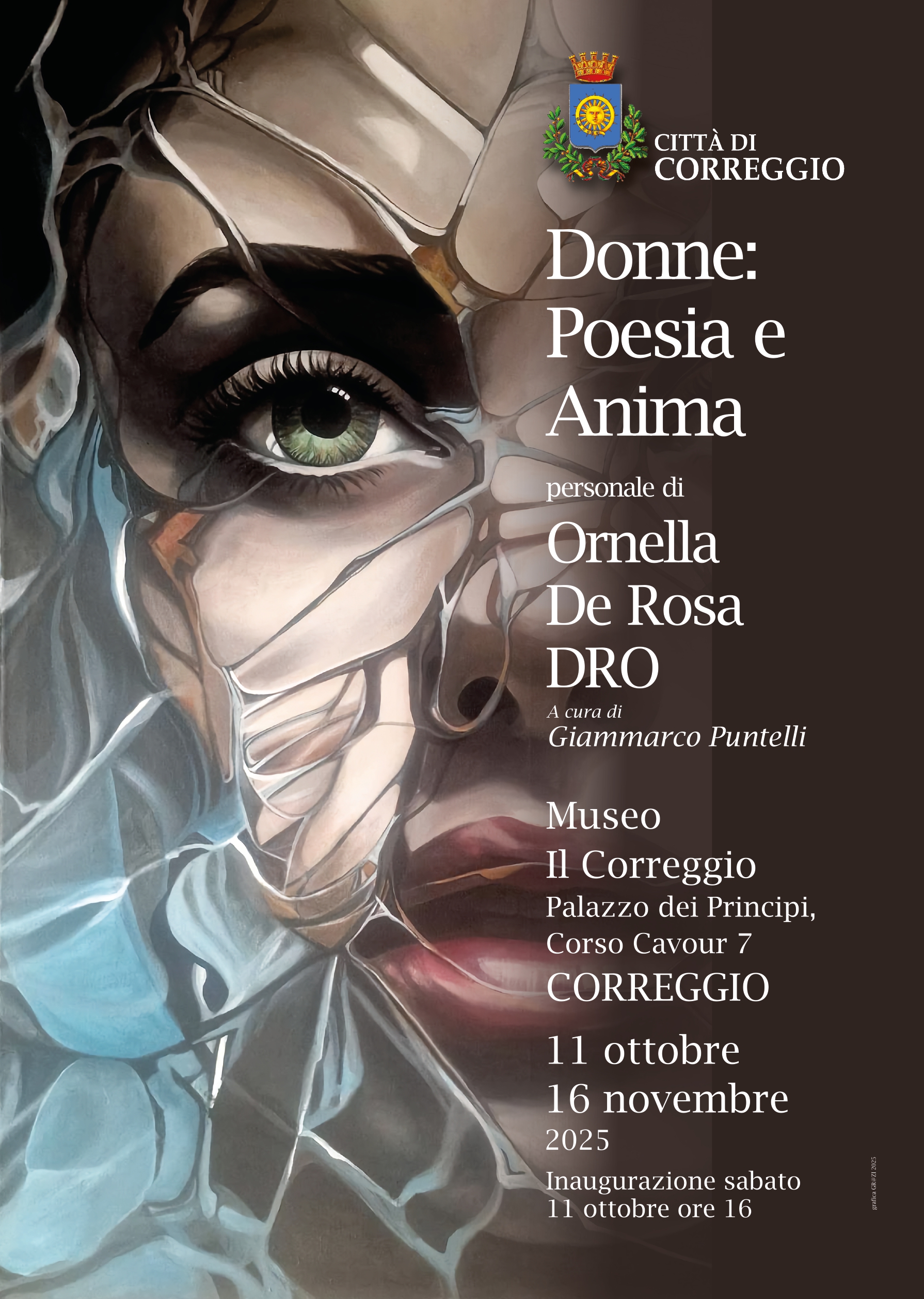 Sabato 11 ottobre alle ore 16 sarà presentata a Correggio, presso le Gallerie Espositive di Palazzo dei Principi, la mostra personale di Ornella De Rosa DRO dal titolo Donne: Poesia e Anima, a cura di Giammarco Puntelli.