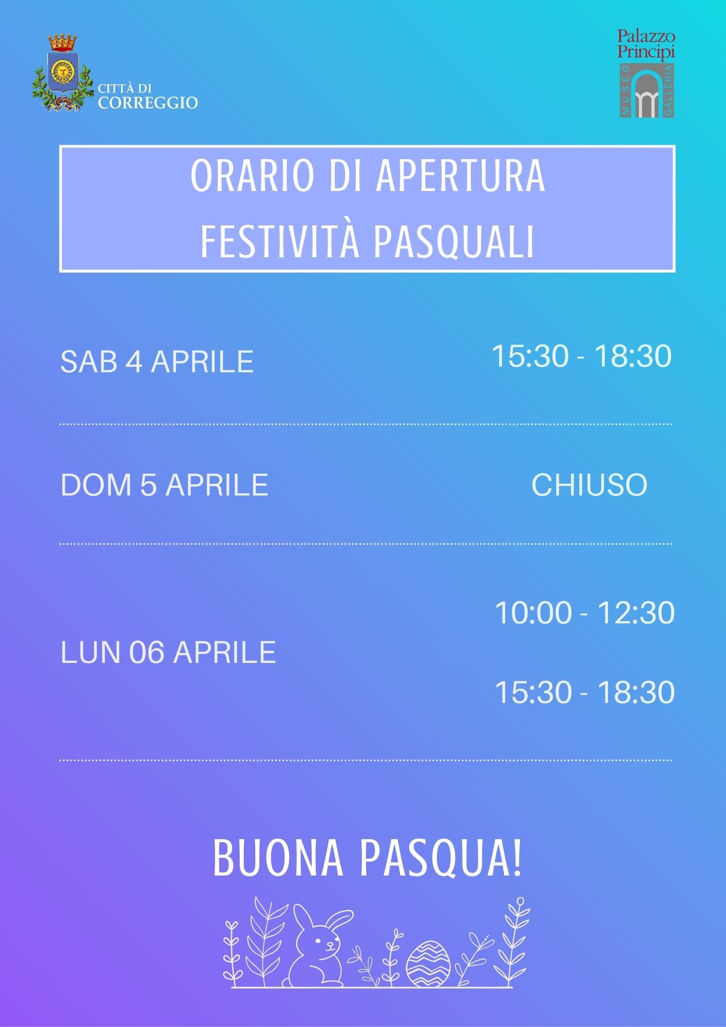 Durante le festività pasquali il Museo Civico Il Correggio osserverà il seguente orario di apertura: